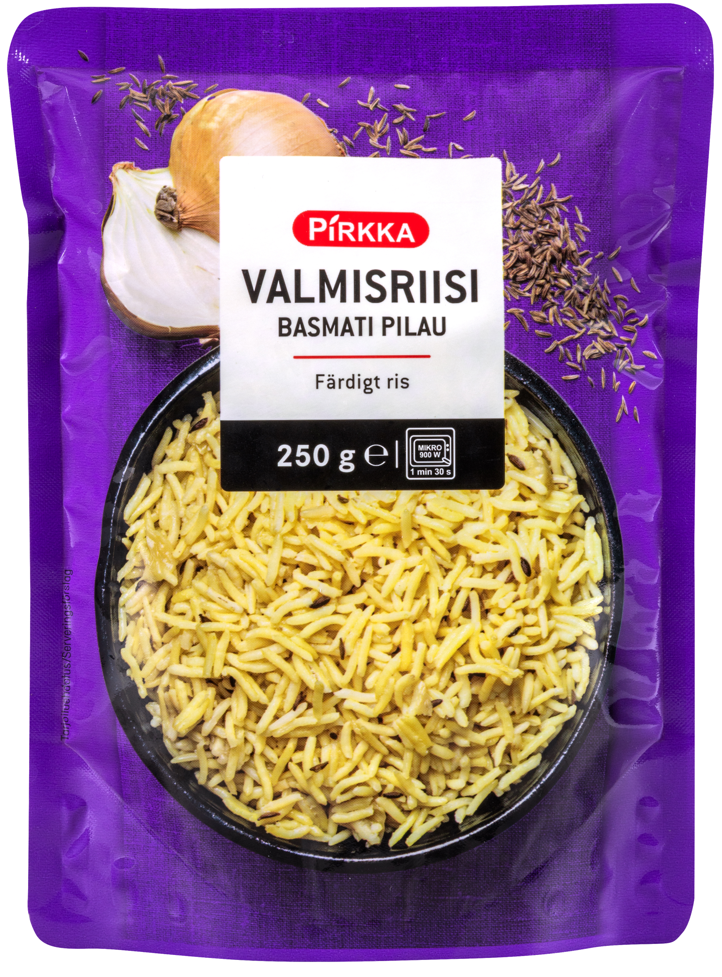 Herkullisen täyteläinen, juustokuminalla maustettu Pirkka valmisriisi basmatiriisi pilau on helppo ja nopea lisäke. Se sopii tarjottavaksi esimerkiksi erilaisten kasvisruokien, kana- tai lammasruokien, palak panerin, curry- ja kastikeruokien kanssa tai esimerkiksi salaateissa. Voit lämmittää riisin kätevästi mikrossa tai paistinpannussa tilkassa öljyä tai tarjota kylmänä esimerkiksi kulhoruoissa.