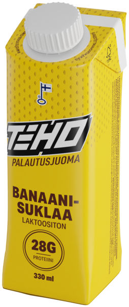 TEHO palautusjuomat on valmistettu suomalaiseen laktoosittomaan lähimaitopohjaan. Tuotteet on jaettu käyttöyhteyden perusteella kahteen konseptiin: voima- ja kestävyysharjoitteluun. TEHO Banaani-Suklaa palautusjuoma on tarkoitettu voimaharjoittelusta palautumiseen tai välipalaksi. Proteiinijuoma sisältää 28 g proteiinia per pakkaus ja 8,6 g/dl hiilihydraatteja.