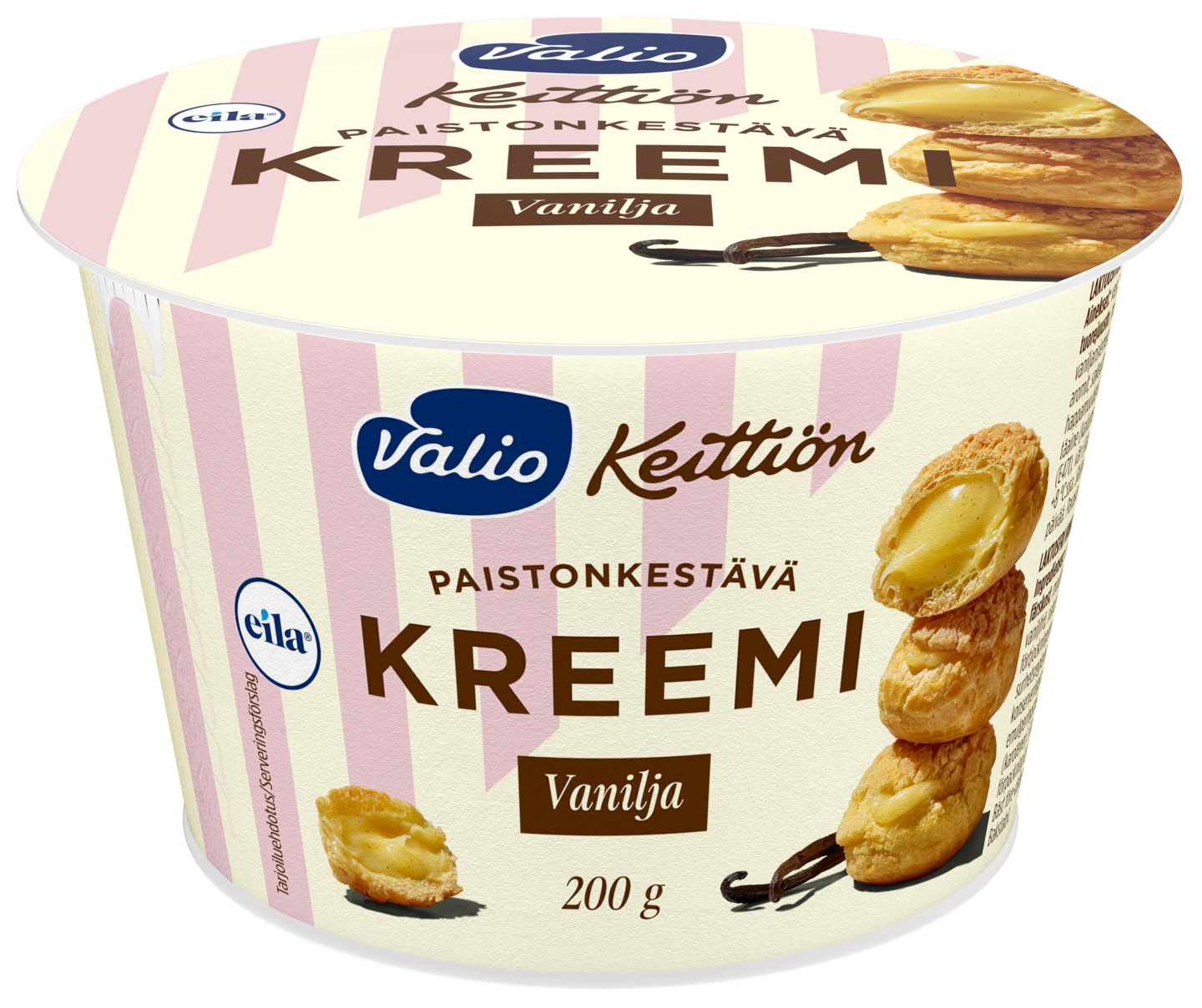 Herkullinen, käyttövalmis Valio vaniljakreemi tuo vaniljaista täyteläisyyttä kaikkeen leivontaan! Paistonkestävä kreemi sopii pulliin, piirakoihin ja kakun väliin, voit hyvin vatkata kreemin myös kermavaahdon sekaan. Tutustu herkullisiin resepteihin! Laktoositon vaniljakreemi löytyy kaupan kylmähyllystä.
