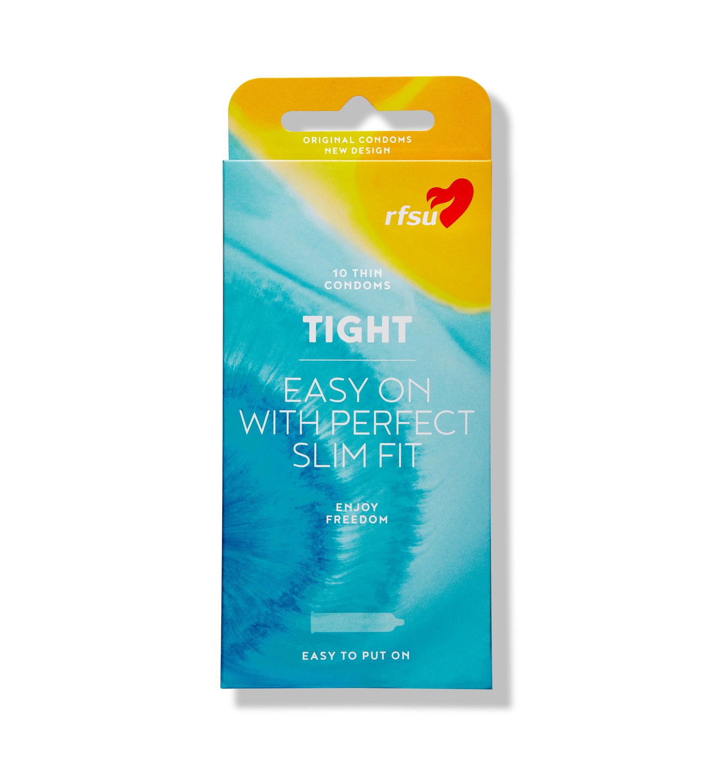 RFSU Tight on kondomi napakalla istuvuudella. Ohut ja varma kondomi, jonka suora muoto helpottaa päälle pukemista. Kondomin pituus on 175mm, ympärysmitta 98mm ja halkaisija 49mm.