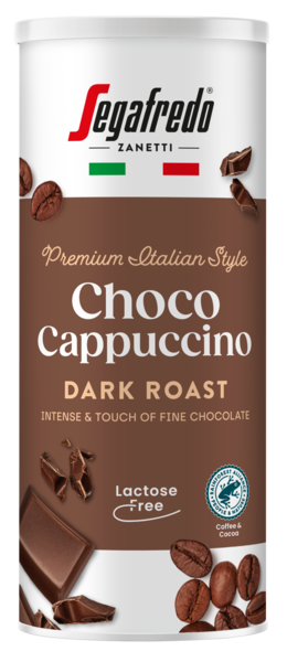 Segafredo Choco Cappuccino on intensiivinen ja täyteläisen suklainen maitokahvijuoma, joka sisältää vahvaa, tummapaahtoista italialaistyyppistä kahvia, raikasta maitoa sekä herkullista kaakaota. Juomassa käytetty maito on laktoositonta, kahvi ja kaakao ovat Rainforest Alliance -vastuullisuussertifioituja.